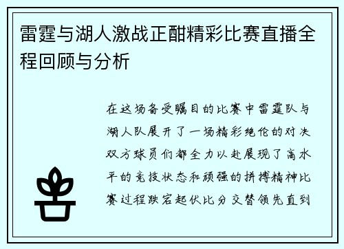 本文将对北体大与泰州远大的精彩对决进行深入的回放分析和赛后点评。比赛中,双方展现了高水平的竞技状态与战术安排,给观众带来了极大的视觉享受。从比赛过程看,两支球队在攻防两端都有出色表现,尤其是北体大的年轻球员们展现出的活力与创造力,以及泰州远大团队配合的默契,都让这场较量充满悬念。接下来,我们将从比赛过程、战术分析、球员表现以及赛后点评四个方面进行详细阐述,以全面呈现这一场精彩赛事的各个层面。 1...